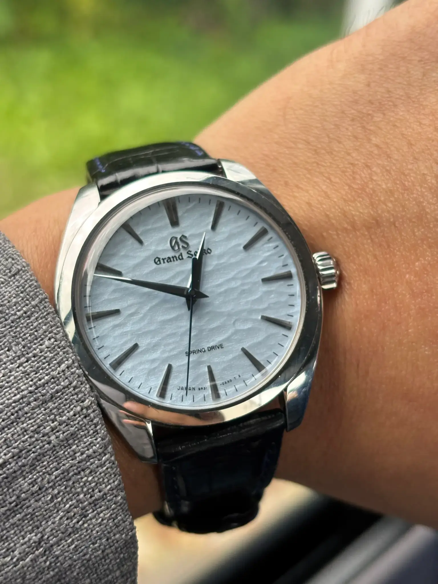 此外,最能體現Grand Seiko 那師法於自然,試圖捕捉「Nature of Time」精神的創造,就是Spring Drive 機芯了吧!近看面盤宛若流動的指針,像是靜靜的伴隨你走過時光流逝。這是1970 年代末期,由日本傳奇的年輕工程師/ 機芯設計師赤羽好和(Akahane Yoshikazu)所發明。「一切源於想創造完美手錶的渴望。」赤羽好和如此相信,他將機械機芯結合上部分的石英單元,創造了一枚不需要電池,卻能在精準度上直逼石英錶的發明。
