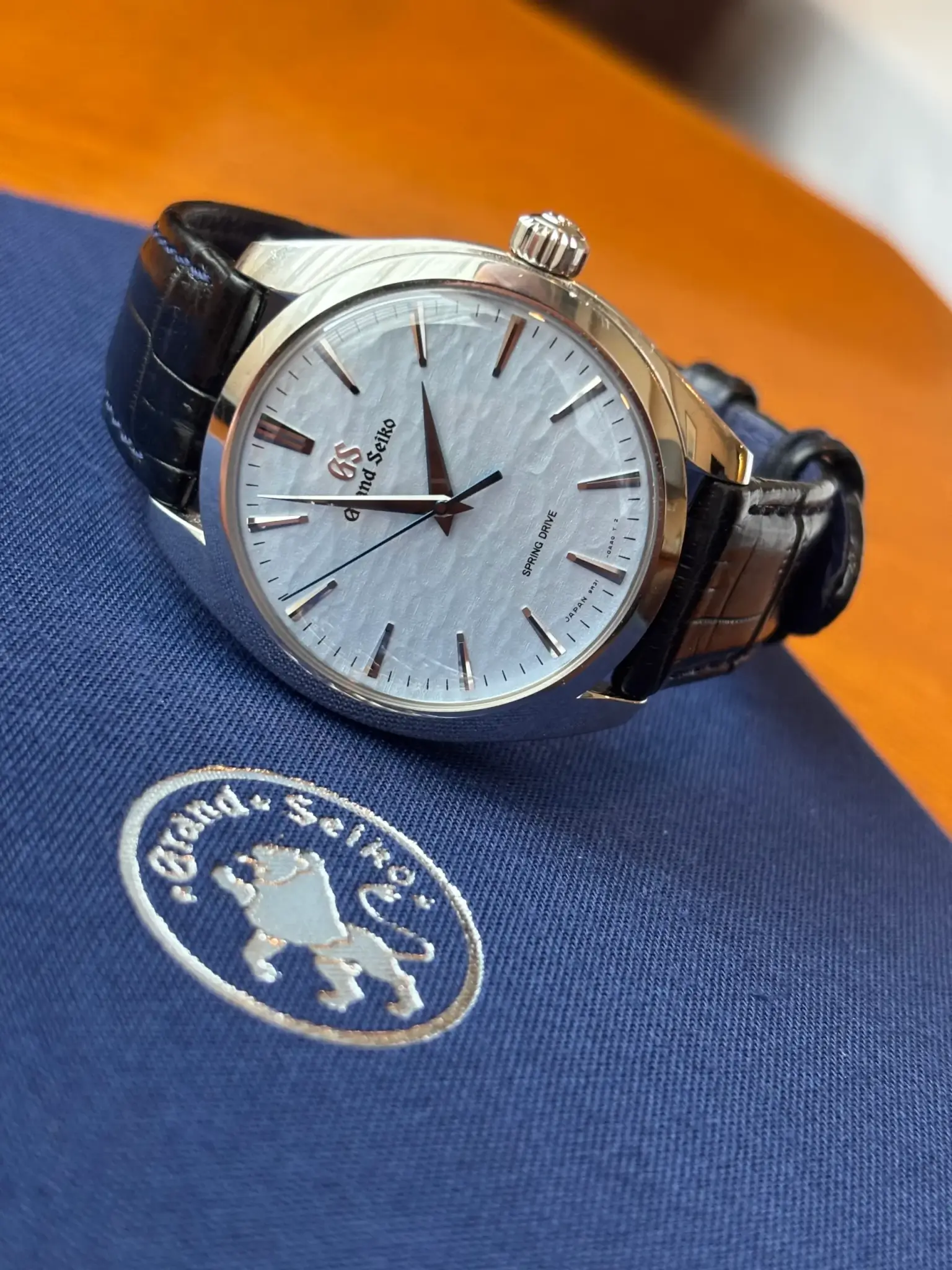 而著名的Spring Drive SBGY007 腕錶的面盤「御神渡」,則是設計師酒井清隆(Kiyotaka Sakai)以家鄉的諏訪湖冬季傳說為靈感,將隆冬時節結冰湖面,因湖水下的溫泉產生溫差,因而讓湖冰龜裂的神奇現象,化為錶面上冰藍色的凹凸波紋紋理。搭配滑行的藍鋼指針,若時間飛逝,水藍湖面的錶盤彷彿讓人身處湖畔。